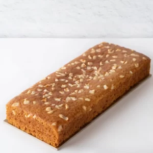 A warm brown sugar and walnut streusel cake, sweetened with the goodness of honey.